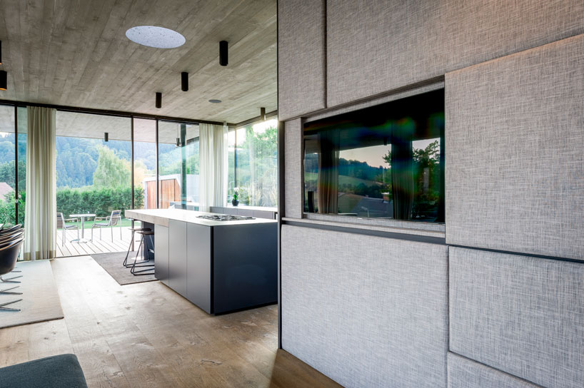 Trong quá trình thi công, các quy định của Áo chỉ cho phép mỗi tầng có diện tích tối đa không quá 200 mét vuông. Để đảm bảo không gian cho gia đình có 5 thành viên, hầu hết các khu vực sinh hoạt đều được bố trí ở tầng trệt. Tầng hai là các phòng ngủ của trẻ em và một thư viện liền kề với ban công.