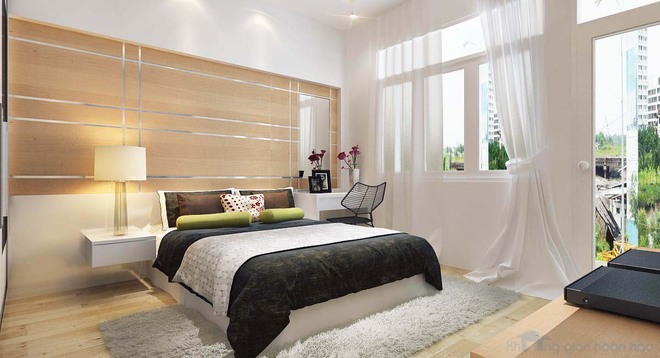 Phòng ngủ với phong cách mộc từ chất liệu gỗ đến màu sắc tao nhã.