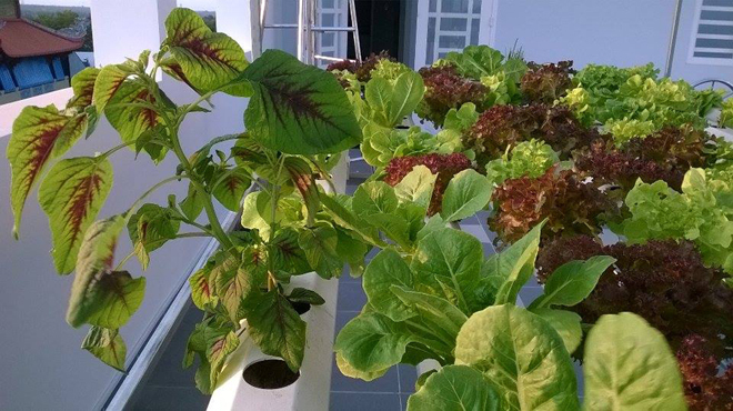 Khu vườn đẹp đầy rau xanh trên sân thượng
