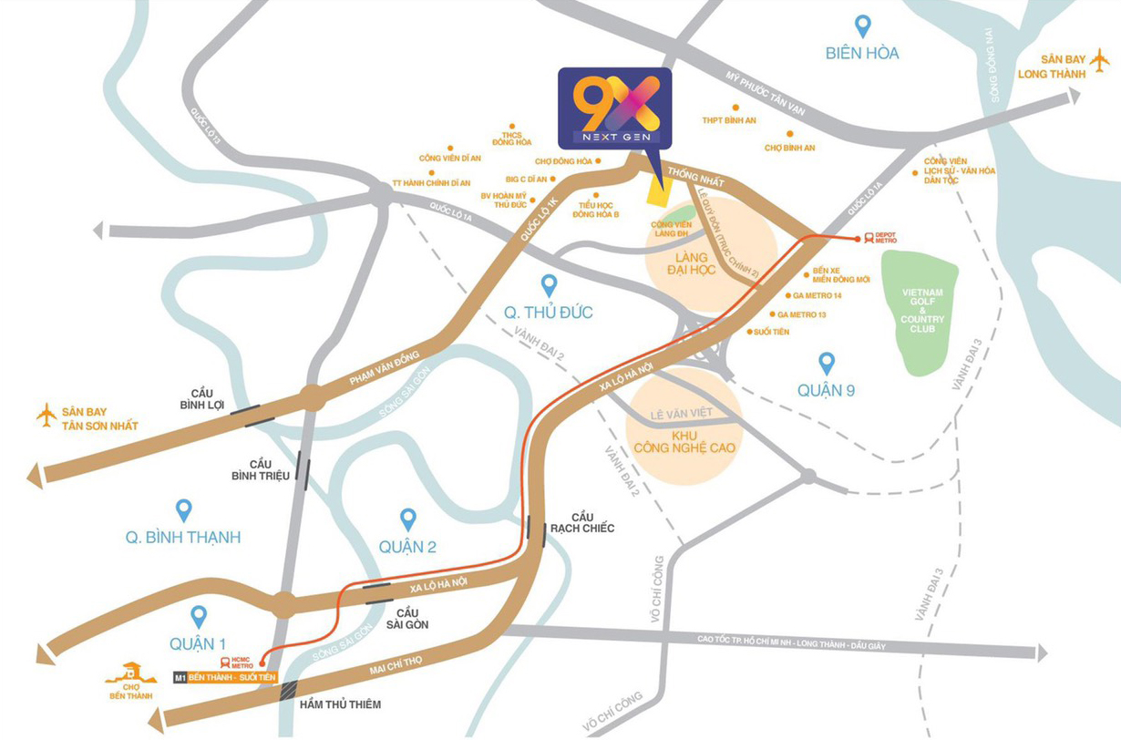 Ngoài việc gần tuyến metro Bến Thành – Suối Tiên, 9x Next Gen Dĩ An còn có ưu thế khi gần 2 tuyến đại lộ lớn giúp cư dân có thể di chuyển về Quận 9, Thủ Đức rất nhanh là tuyến Xa Lộ Hà Nội và Quốc lộ 1K – Phạm Văn Đồng.