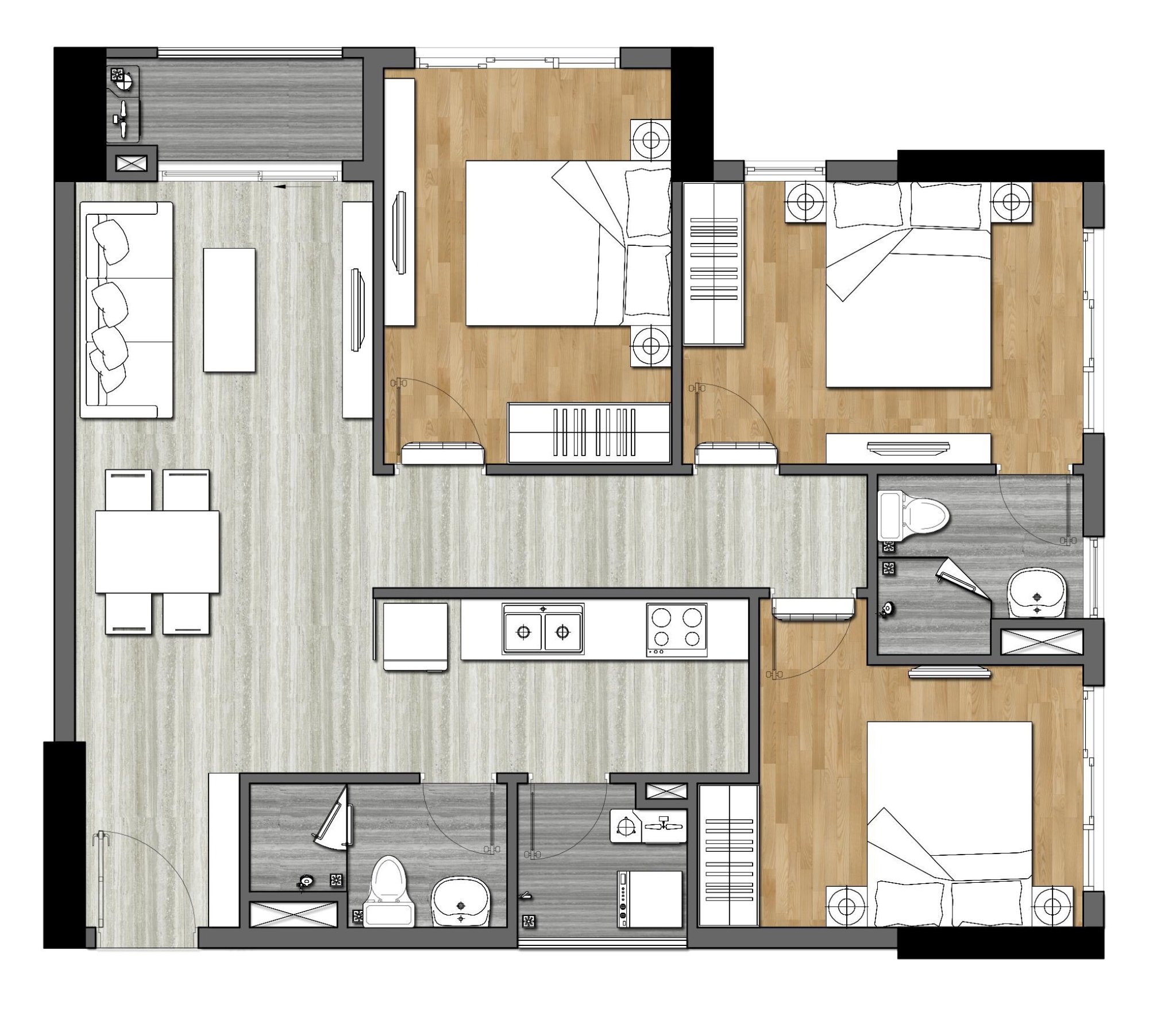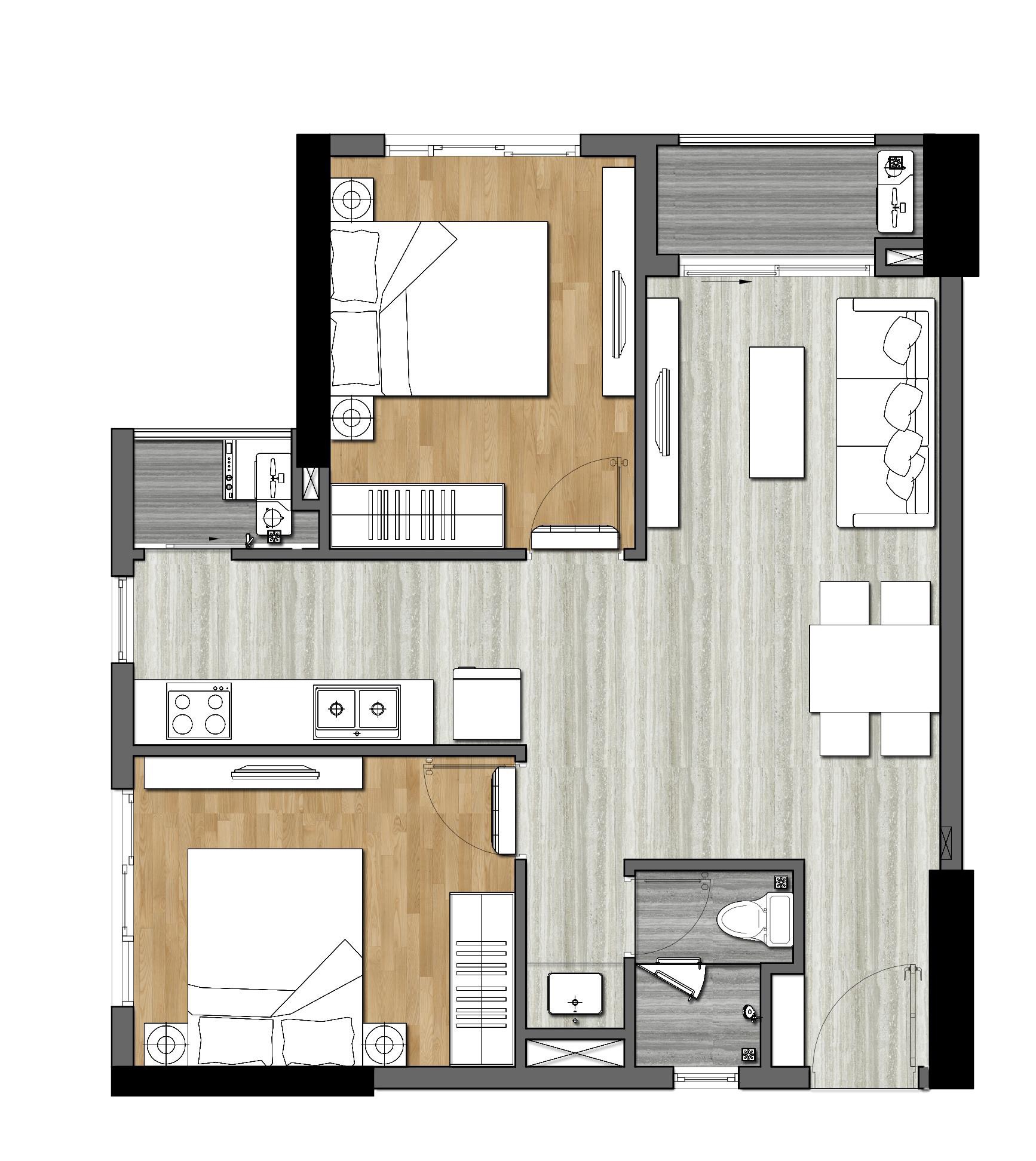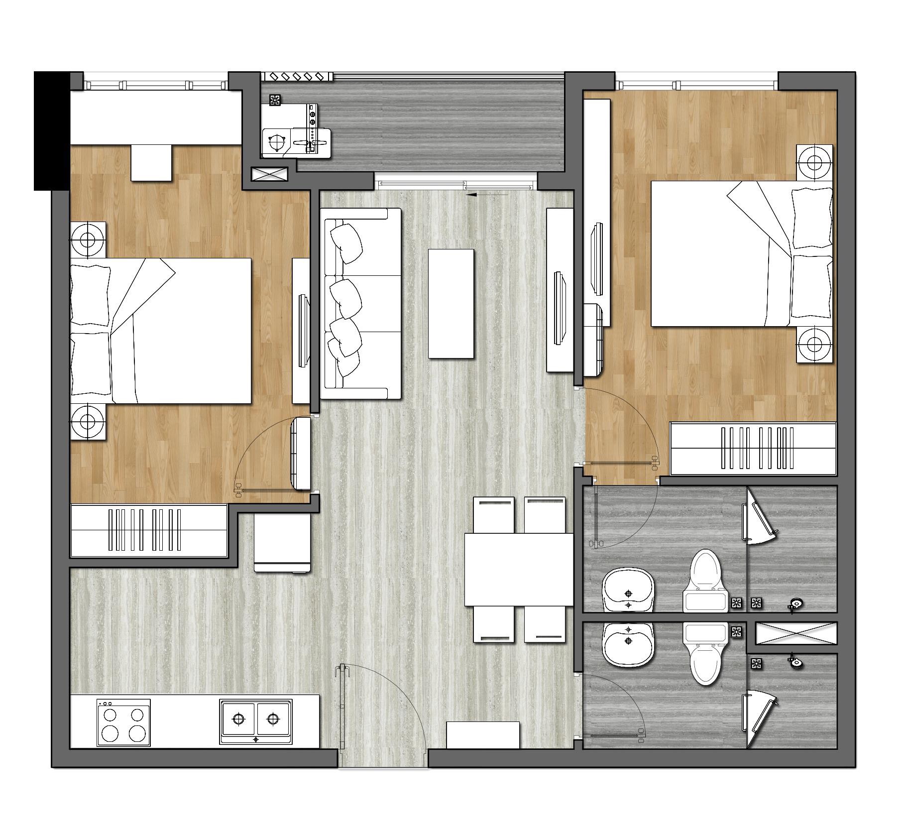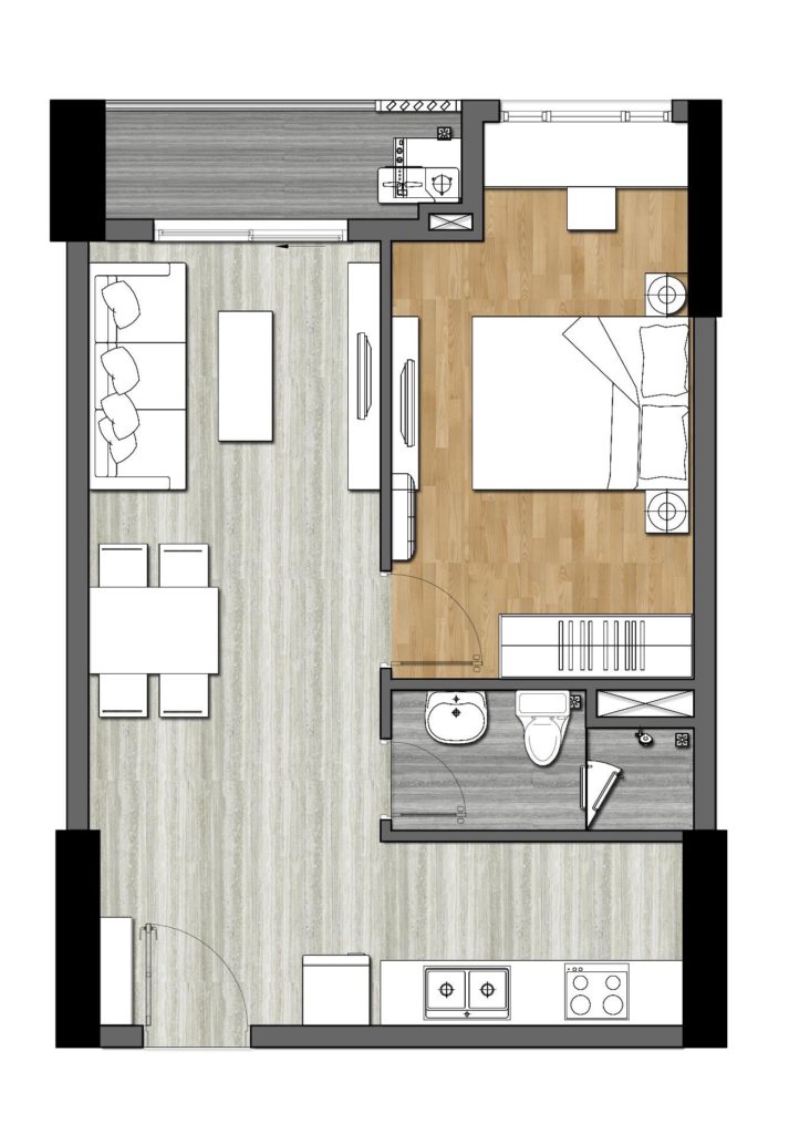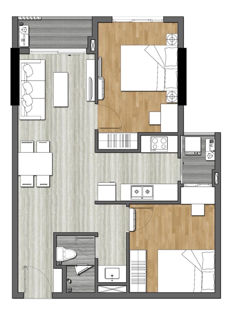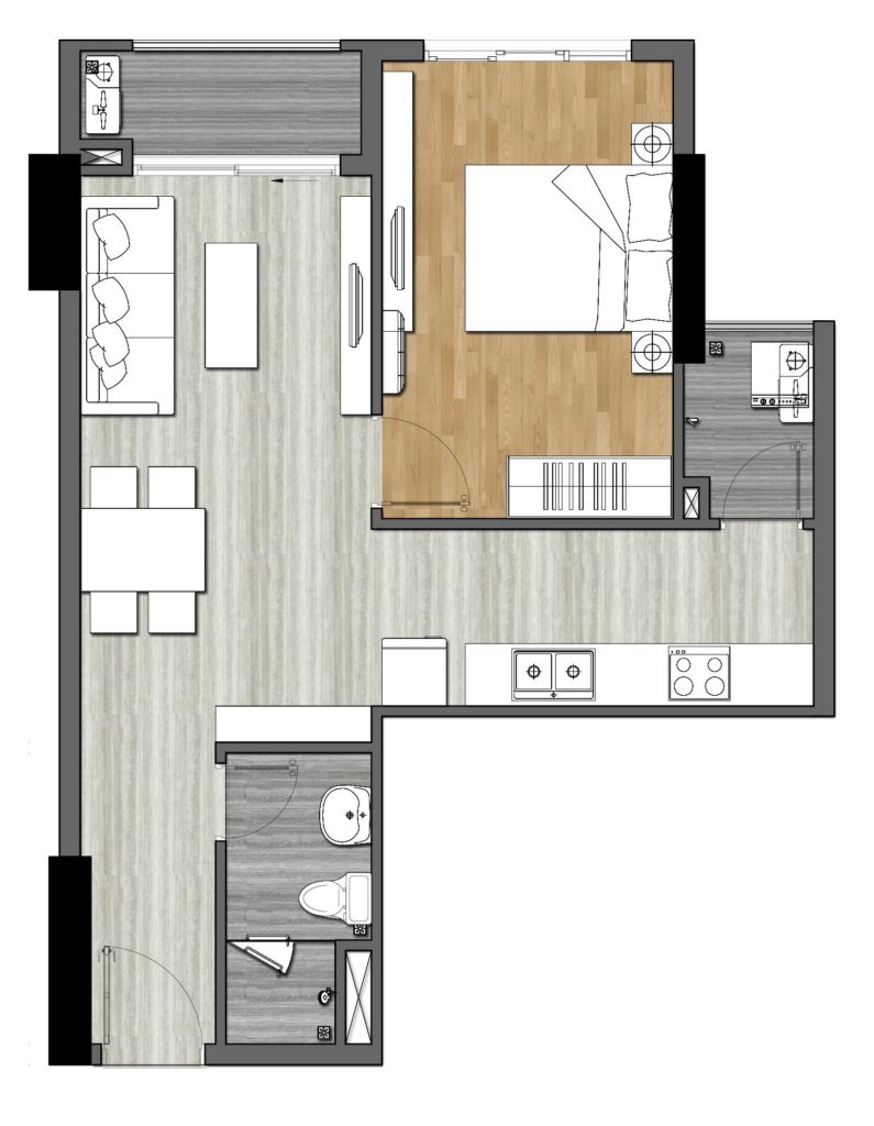 Trong thiết kế mặt bằng Căn hộ 9x Next Gen Bình Dương chúng ta có thể nhận thấy sự cân bằng diện tích giữa không gian sinh hoạt, phòng ngủ, phòng vệ sinh, lô gia và sân phơi. Đặc trưng của tất cả căn hộ 9x là khi bước vào cửa là không gian rộng rãi nơi phòng khách và nhìn ra phía ban công bên ngoài.
