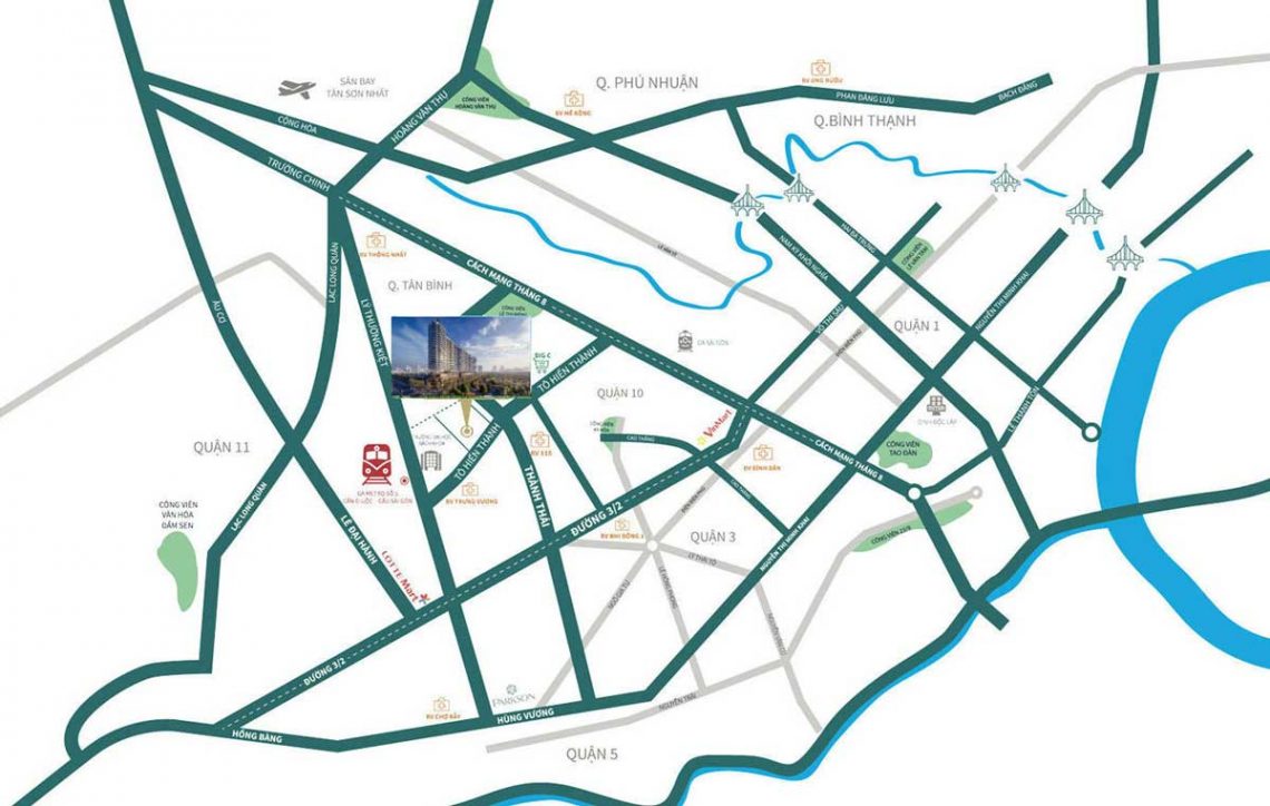 Vị trí tọa lạc này của dự án được đánh giá là đắc địa hàng đầu tại quận 10, có khả năng liên kết vùng hoàn hảo khi nằm ở ngay hai tuyến đường chính của quận 10. Và nhờ đó mà đã sở hữu chuỗi tiện ích dịch vụ ngoại khu hiện hữu hoàn hảo, nổi trội ngay gần trung tâm thành phố.