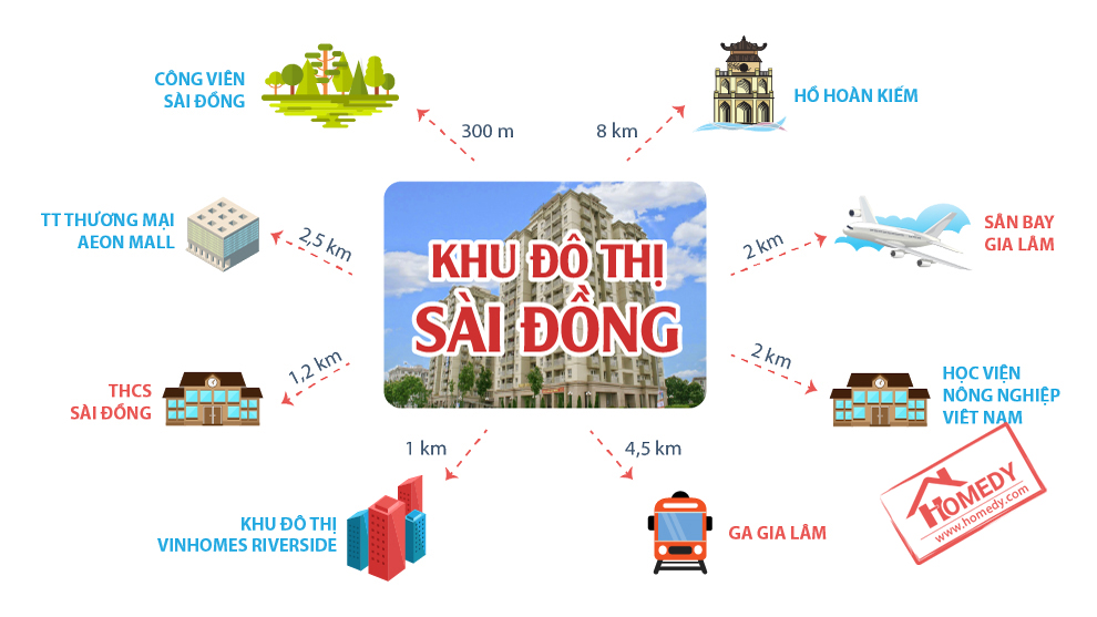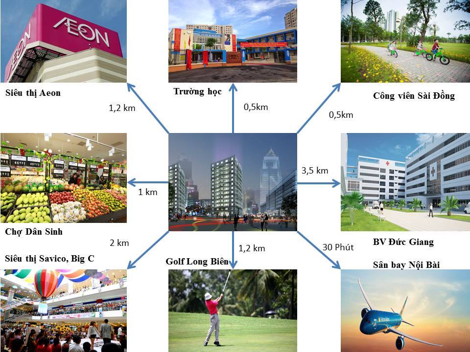 Dự án nằm ngay chân cầu Vĩnh Tuy, trong quy hoạch khu đô thị Sài Đồng, xung quanh là các khu đô thị lớn : Vinhomes Riverside, Việt Hưng, Times City….