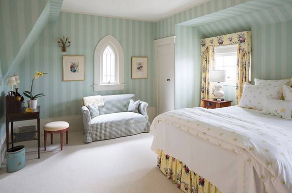 Những họa tiết đường kẻ dọc chạy dọc theo chiều cao của các bức tường cũng là một cách lý tưởng để làm cho phòng ngủ có trần thấp trông cao hơn, thoáng hơn do tạo sự hút mắt theo những đường kẻ dọc đó.