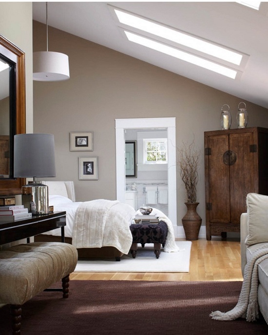 Bạn cũng có thể chọn gam màu trung tính để cho trần nhà và kết hợp với việc