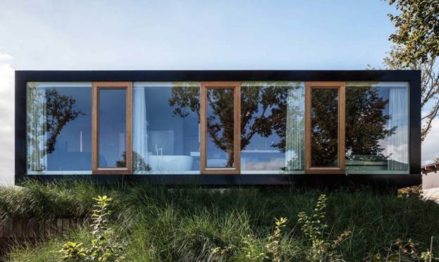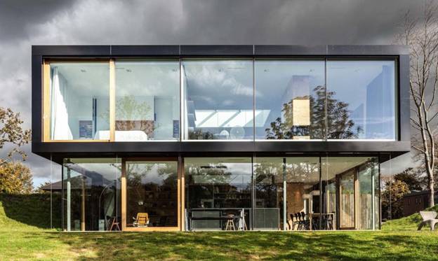 Mặt tiền kính ở phía phía bắc và phía nam mở ra những cảnh quan đồi cát nhấp nhô,