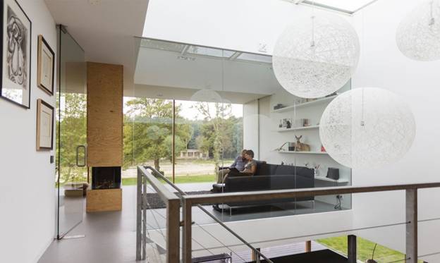 Hiện trên mặt đất như một đụn cát, ngôi biệt thự rộng 489m2 là một cấu trúc đầu nặng với tầng trệt nhỏ hơn được xây dựng dựa một phần vào độ dốc. Vật liệu kính được thiết kế ở cả mặt tiền phía bắc và phía nam, mở ra những cảnh quan đồi cát nhấp nhô, giúp không gian đón được nhiều gió và ánh sáng tự nhiên. Ánh sáng ban ngày được đưa sâu vào không gian bên trong thông qua một bầu trời lớn ở khu vực trung tâm. Trái với mặt tiền hoàn toàn bằng kính, phía tây và phía đông mặt tiền là chủ yếu khép kín và được bao phủ hoàn toàn bằng gỗ.