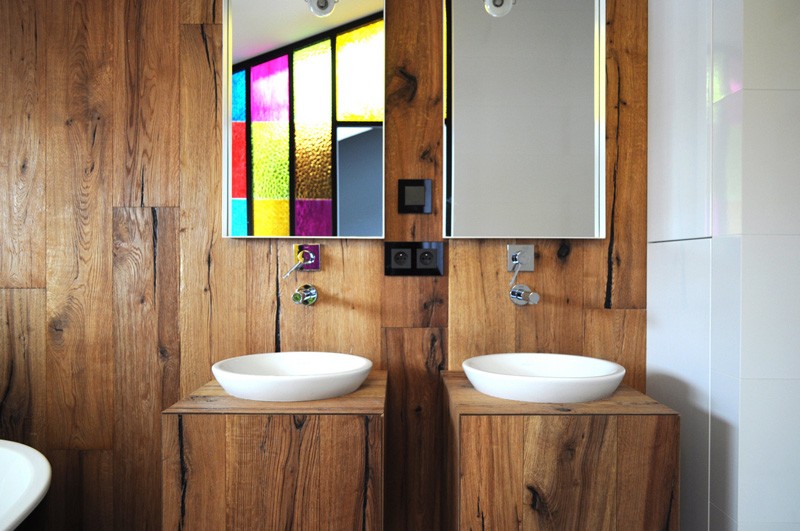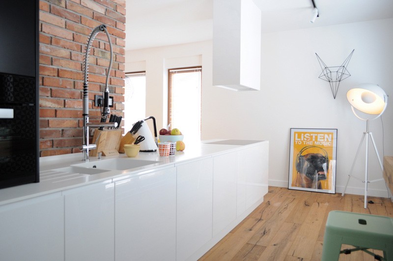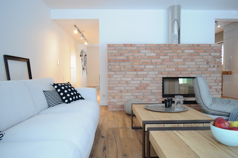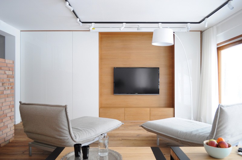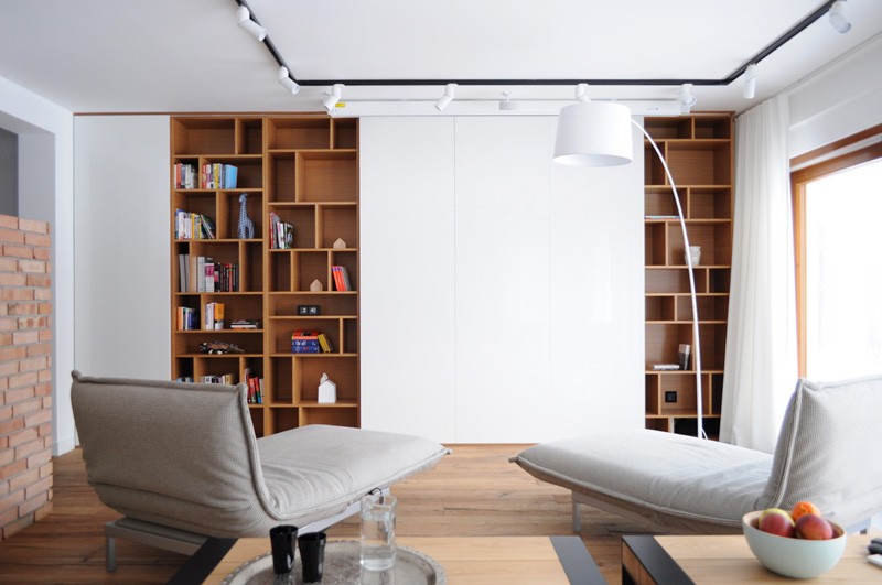 Để làm cho những bức tường trắng bớt đơn điệu, chủ nhân căn hộ dùng xen kẽ những mảng tường gạch, nhờ đó không gian có thêm sự tươi sáng và thanh lịch. Căn hộ cũng sử dụng chủ yếu chất liệu gỗ mộc mạc, quen thuộc khi chúng xuất hiện ở hầu khắp mọi nơi, từ sàn nhà, bàn ghế đến những mảng ốp tường. Tuy nhiên, không gian sống vẫn được xen kẽ các chất liệu nội thất hiện đại, tạo nên những điểm nhấn hút mắt cũng như phong cách độc đáo cho căn hộ. Ngoài ra, mỗi góc nhỏ trong căn hộ bạn sẽ bắt gặp những ý tưởng trang trí rất độc đáo, lạ mắt nhưng cũng vô cùng hấp dẫn và sáng tạo. Bạn hoàn toàn có thể áp dụng chúng cho ý tưởng về căn hộ của riêng mình.
