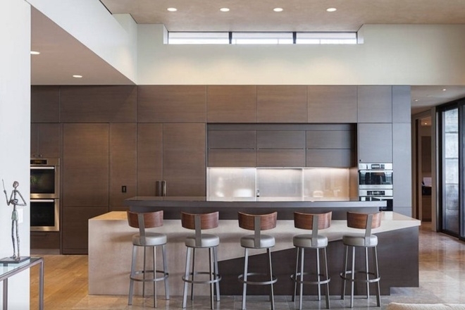Rất nhiều bức tường trong nhà được làm từ kính, kéo dài từ sàn đến trần nhà, tạo cảm giác thoáng đãng đồng thời kết nối