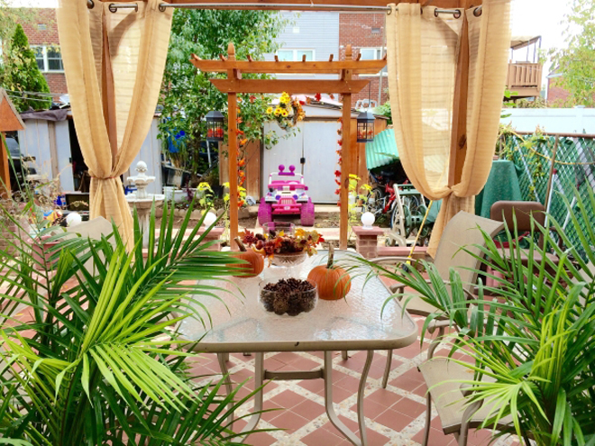 Khu vườn nhà anh Vũ có chòi lãng mạn để ngồi thưởng trà, ngắm hoa,