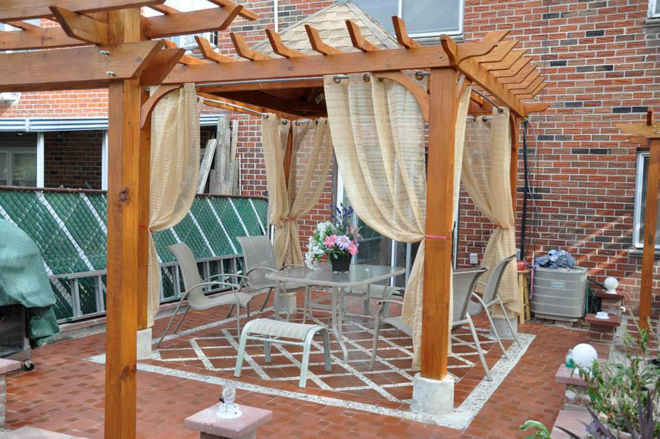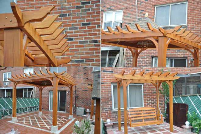 Anh Vũ kết hợp khung che bằng gỗ và vọng lầu với nhau. Những thanh gỗ vát xéo