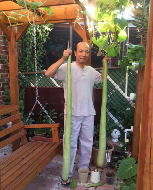 ngắm giàn bầu với quả dài gần bằng thân người lớn