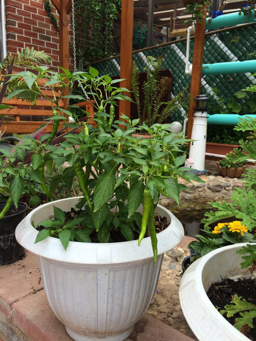 Trong vườn, anh Vũ còn trồng các loại cây như ớt, cà chua và các loại rau thơm...