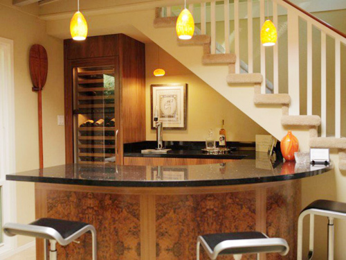 Một tủ rượu nhỏ được bố trí vào góc nhà giúp chủ nhà và bạn bè có thể nhâm nhi