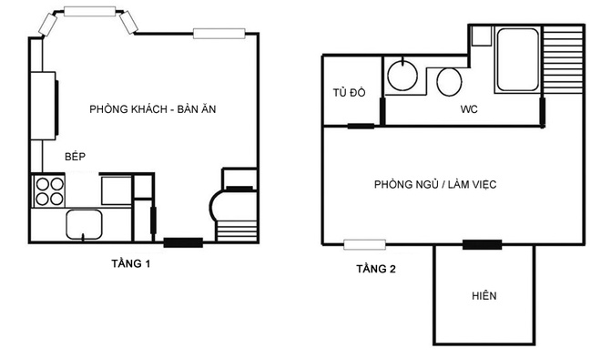 nơi làm việc và phòng ngủ được bố trí ở tầng 2